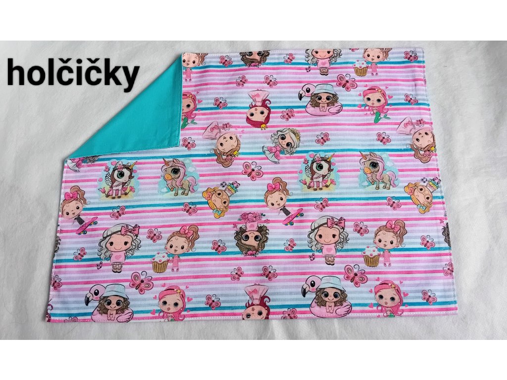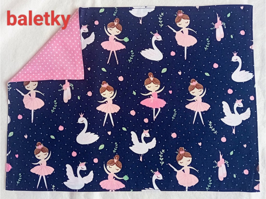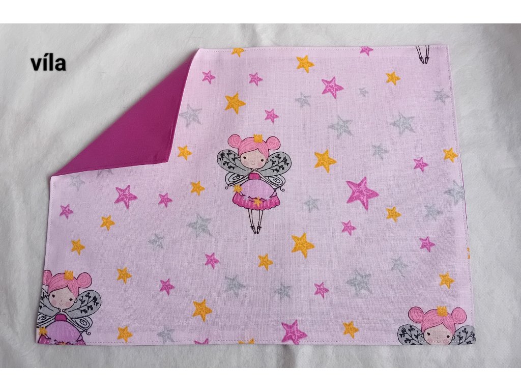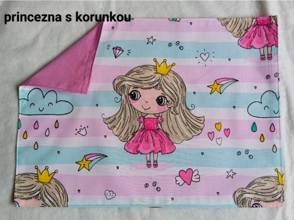 Prostírání na svačinu: rozměr cca 37 x 27 cm. Ubrousek je oboustranný. Vrchní strana hlavní motiv, spodní strana sladěná ke vzoru.
